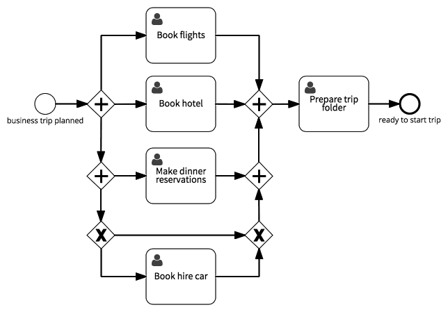 The following flow chart illustrates the automated process of a business trip, from booking to expense reporting.